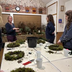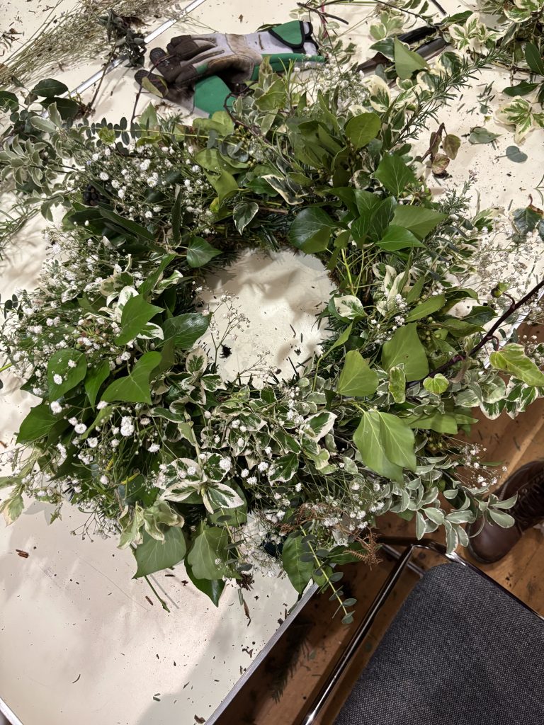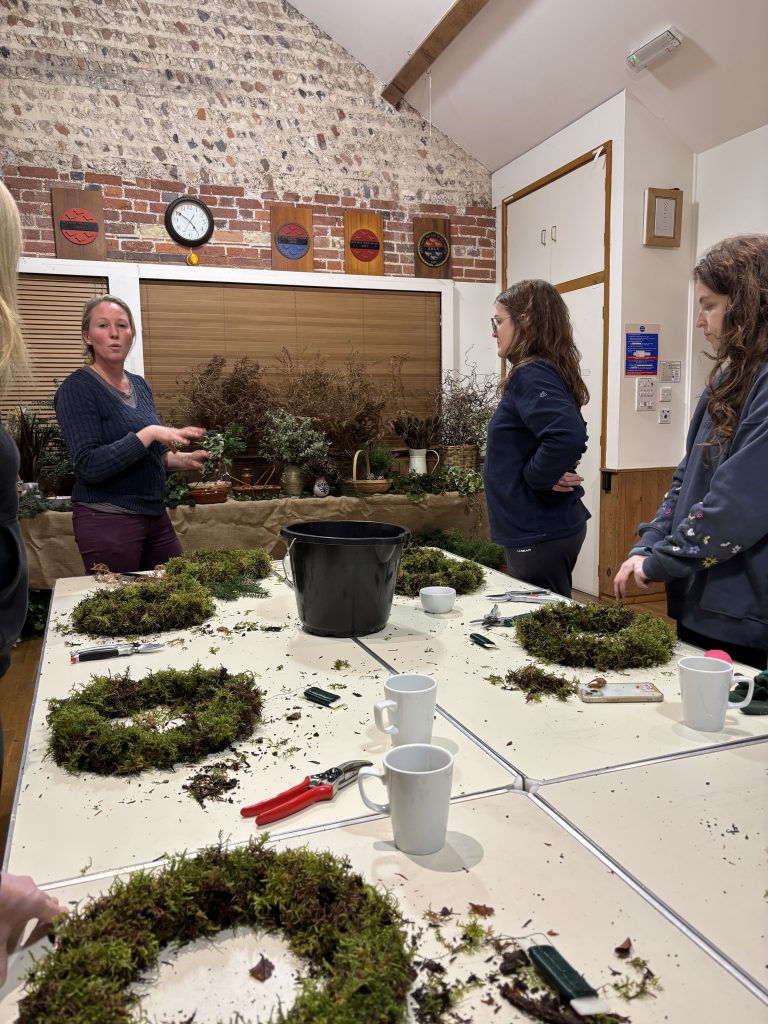 Wreath Making – Working with your hands, feeling foraged foilage, preparing to create something beautiful is a meditative experience in itself. Scientific evidence shows the brain waves change increasing the frontal alpha and theta activity which is exactly the same state observed during yoga Nidra which reduces stress and anxiety and increasing mindfulness. That coupled with a lovely group of likeminded people to enjoy the time with promises this will be a wonderfully fulfilling, fun and joyous event. Nicola will be leading the wreath making. She sells her creations at local artisan events. Pictures are below of some of her stunning wreaths.